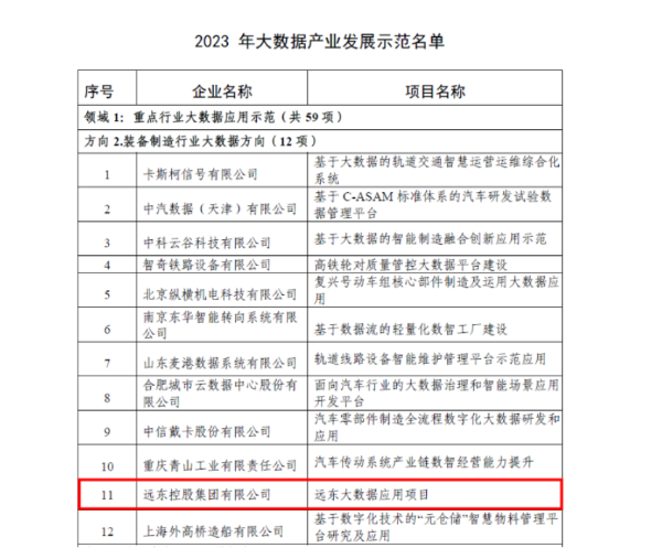 3.遠(yuǎn)東控股集團(tuán)入選工信部大數(shù)據(jù)產(chǎn)業(yè)發(fā)展示范項(xiàng)目